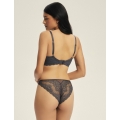 Tamsaus grafito atspalvio „Caris“ kelnaitės pasižymi moderniu ir rafinuotumu. Permatomi nėriniai su gėlių motyvu sukuria intriguojantį šviesos žaismą ant odos, suteikdami lengvumo ir jausmingumo. Paprastas, patogus kirpimas puikiai prisitaiko prie figūros, užtikrindamas komfortą visą dieną. Šie apatiniai atspindi tvirtumą ir eleganciją – moterims, kurios vertina subtilumą moderniu būdu.